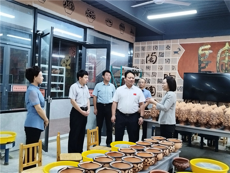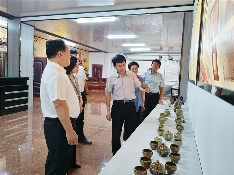 魏雷東一行分別到我公司的生產(chǎn)車間、研學基地、彩陶藝術館等地進行了實地考察,對我公司的彩陶制作工藝、非遺保護、文創(chuàng)研發(fā)等工作給予肯定,并就下一步校企合作、名師工作室等事宜進行座談交流。