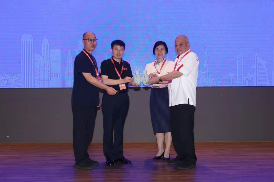 河南仰韶科技開(kāi)發(fā)有限公司董事長(zhǎng)王新軍現(xiàn)場(chǎng)贈(zèng)送由王新軍非遺團(tuán)隊(duì)創(chuàng)作禮品:仰韶瓷雙聯(lián)壺。圖為王新軍大師和會(huì)長(zhǎng)論壇發(fā)起人、會(huì)長(zhǎng)論壇組委會(huì)會(huì)長(zhǎng)徐軍昌,中國(guó)駐馬來(lái)西亞大使館馬翠宏參贊、馬來(lái)西亞(華總)會(huì)長(zhǎng)丹斯里吳添泉博士的合影。