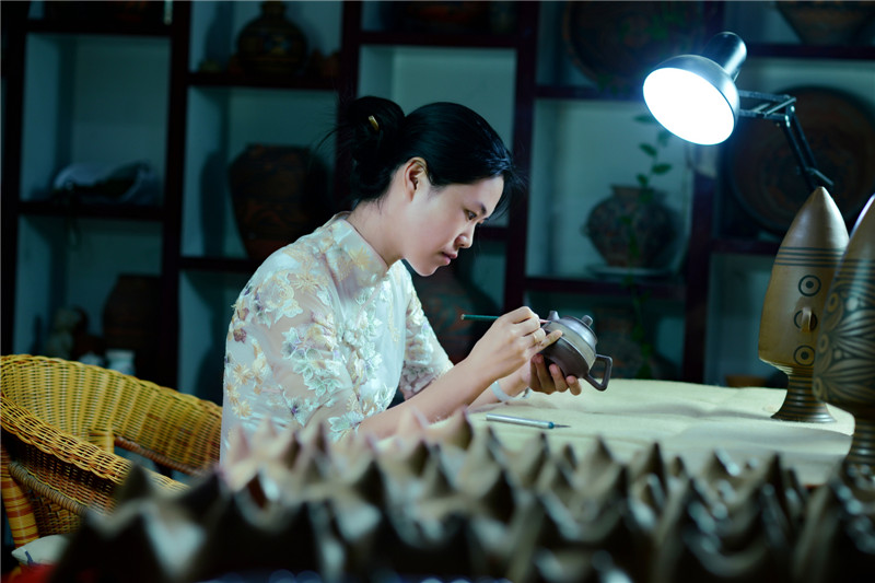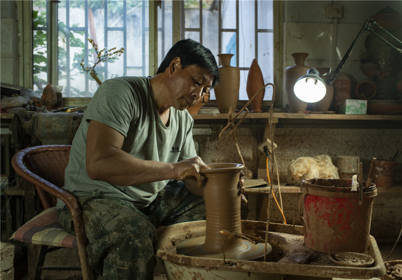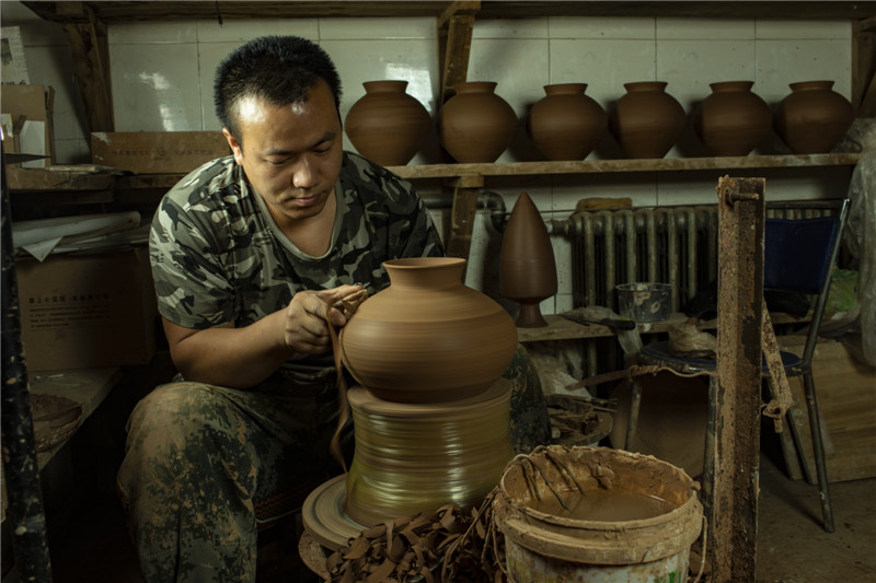 選用優(yōu)質(zhì)陶土,加上一把黃河泥,經(jīng)過打磨、雕刻、燒制等系列工序后,搖身一變成了一個古色古香的彩陶。河南仰韶科技開發(fā)有限公司總經(jīng)理、仰韶彩陶傳承人劉新安說,“我們?nèi)慷际侨斯ぶ铺?,秘法作業(yè),滿輪拉坯成型,天然無機顏料彩繪,差不多整個制作過程要兩周左右。”